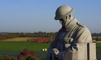 Red poppy flowers were dropped onto soldiers, politicians and onlookers from across the world gathered in western Belgium on Tuesday to commemorate the end of World...