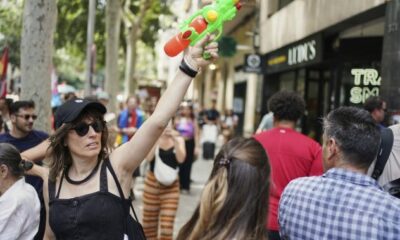 Protesters used water pistols against unsuspecting tourists in Barcelona and on the Spanish island of Mallorca on Sunday as demonstrators marched to demand a rethink of...