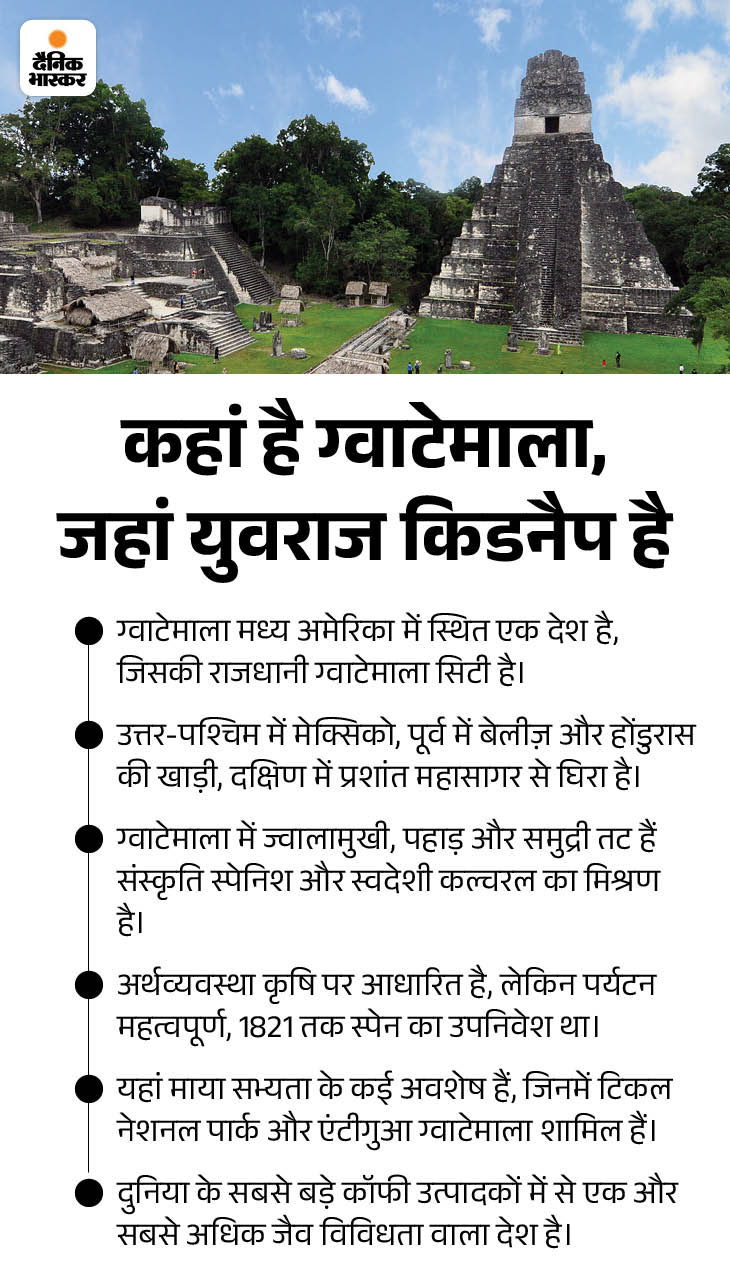 युवराज को ग्वाटेमाला में बनाया गया बंधक उन्होंने कहा कि बेटे युवराज से कई दिन से संपर्क नहीं हो पा रहा है। इसी बीच उनके मोबाइल पर वीडियो भेजे गए, जिसमें उनके बेटे युवराज को ग्वाटेमाला देश में बंधक बनाना बताया गया। डोंकर उसे छोड़ने की एवज में 20 हजार अमेरिकी डॉलर (भारतीय रुपयों में 17.66 लाख रुपए) की फिरौती मांग रहे हैं। वीडियो में बेटे के साथ एक युवक और नजर आ रहा है, जो पंजाब का बताया गया है।
