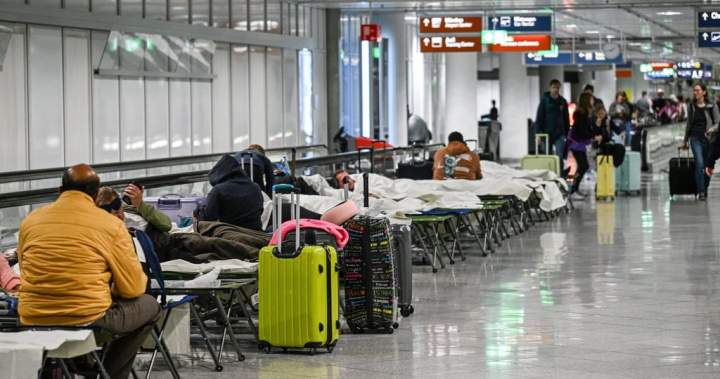 Hundreds of stranded passengers spent the night in cots set up in terminals or were taken to hotels, and blankets, drinks and snacks were distributed to them, the German news agency dpa reported.