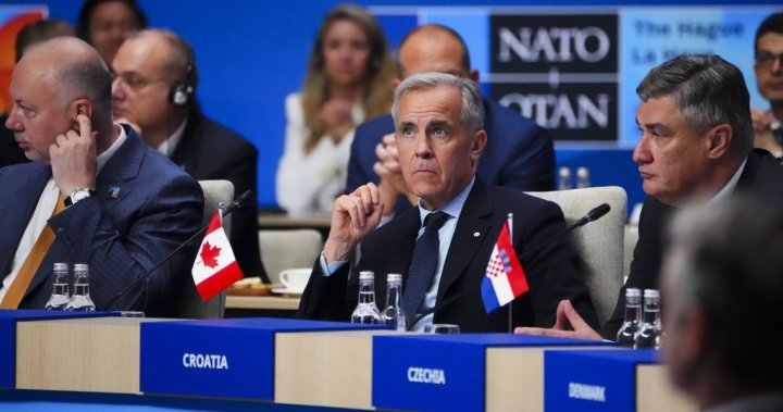 Prime Minister Mark Carney is among the leaders around the table at the annual leaders’ summit in The Hague, where a proposal is being discussed to increase the target to five per cent of annual GDP, up from the current two per cent.